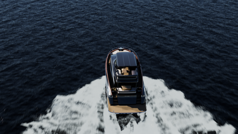 Flybridge, en av yachtens höjdpunkter, har förlängts med 1,4 meter och inkluderar en rymlig loungesoffa samt en grill – perfekt för att njuta av havsbrisen med stil. Samtidigt har badplattformen utökats med 700 mm, vilket skapar extra utrymme för vattenaktiviteter som jetski och andra personliga vattenfarkoster.