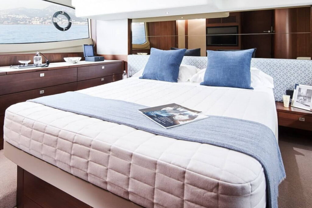 Komfort och lyx: Princess F50 har satts samman med fokus på att erbjuda ultimat komfort och lyx för sina ägare och gäster. Interiören är rikligt inredd med högkvalitativa material och skapar en känsla av raffinerad elegans. De rymliga kabinerna är designade med avskildhet och komfort i åtanke och erbjuder privata badrum och gott om förvaringsutrymmen. Yachten är också utrustad med en välutrustad köksanläggning och moderna bekvämligheter för att göra livet ombord så bekvämt som möjligt. Varje detalj har noggrant övervägts för att ge en upplevelse av överlägsen lyx.