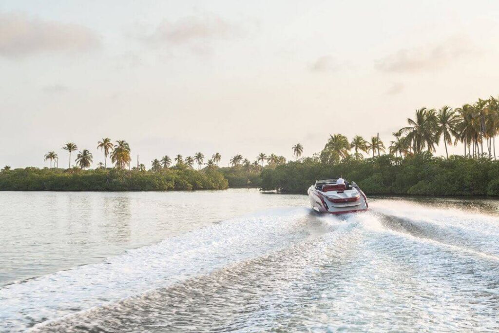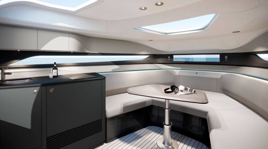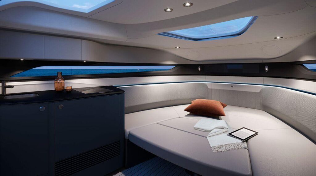 Kraftfull prestanda: Princess Yachts R35 imponerar med sin kraftfulla prestanda, som drivs av en unik kombination av traditionell och modern teknik. Båten är utrustad med två kraftfulla V8-motorer och ett innovativt Active Foil System (AFS). AFS-systemet har utvecklats i samarbete med Ben Ainslie Racing Technologies och möjliggör dynamisk kontroll av foils position, vilket garanterar enastående stabilitet och förbättrad bränsleeffektivitet. Princess Yachts R35 kan nå en imponerande topphastighet på över 50 knop och erbjuda en jämn och bekväm segling i alla situationer.