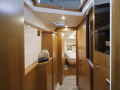 Båten har flera kabiner som erbjuder gott om utrymme för övernattande gäster. Ägarens hytt är en särskilt lyxig upplevelse, med en stor dubbelsäng, gott om förvaringsutrymme och ett eget badrum med dusch. Gästhytterna är också rymliga och bekväma, vilket gör Sargo 45 idealisk för längre resor med familj och vänner.