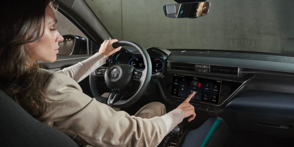 - En digital instrumentpanel och en högupplöst infotainmentskärm på 10 tum med stöd för både Apple CarPlay och Android Auto.
