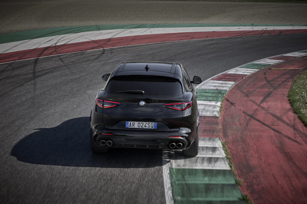 Giulia-modellen har också ett aktivt aerodynamiksystem med en främre kolfibersplitter som justeras för att förbättra stabiliteten och prestandan vid höga hastigheter. Ett Akrapovič avgassystem, känt för sitt distinkta och kraftfulla ljud, kompletterar den sportiga karaktären hos dessa bilar.
