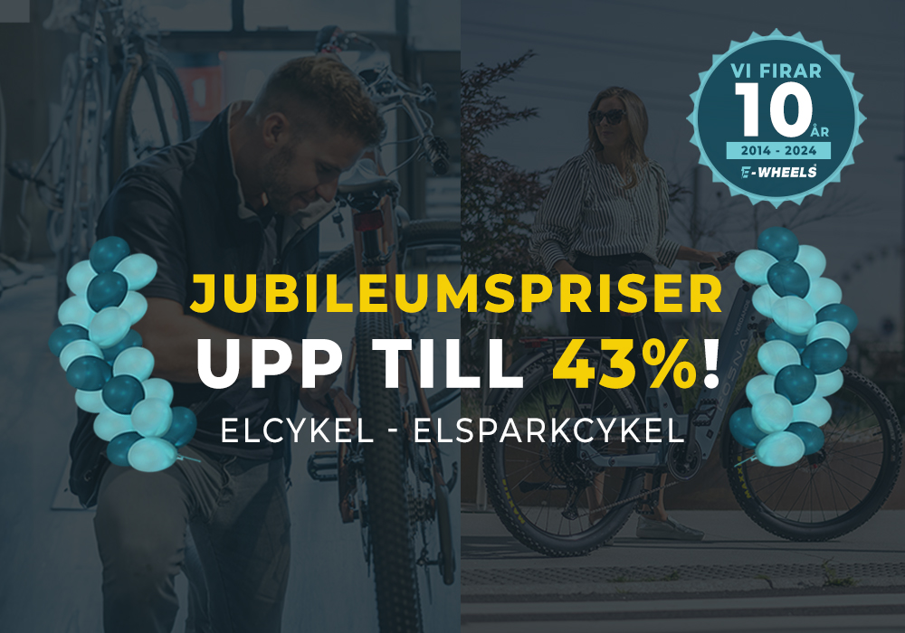 Men det är inte allt. För att fira detta speciella tillfälle ännu mer erbjuder E-Wheels också ett brett utbud av tillbehör till reducerade priser, inklusive hjälmar, lås, lysen och mycket mer.