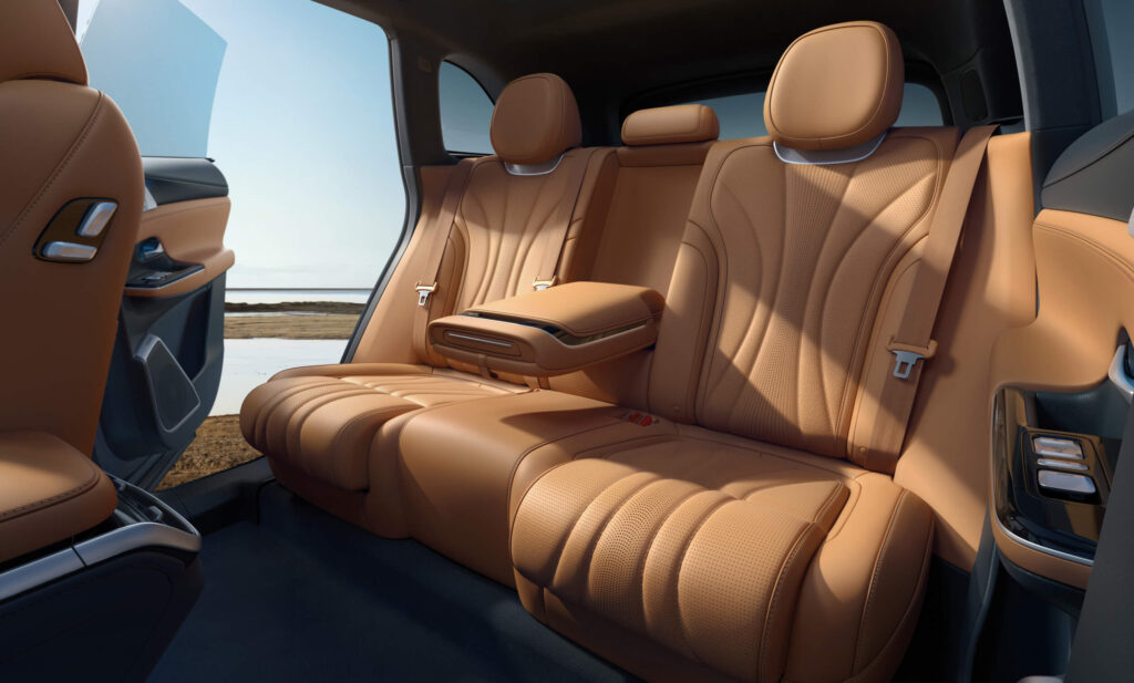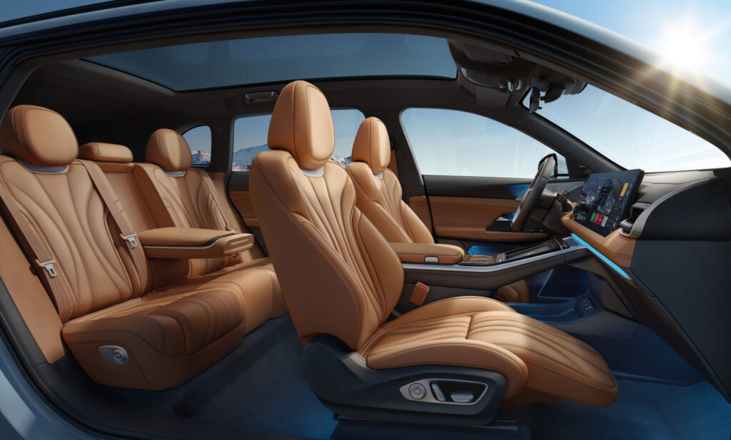 Interiören i XPENG G9 är utformad med fokus på komfort och utrymme. Kabinen erbjuder gott om plats för både förare och passagerare, med sittplatser av högsta kvalitet och premiummaterial som läder och trädetaljer.