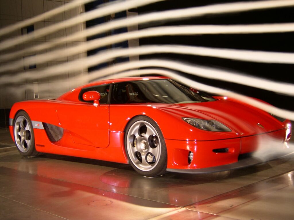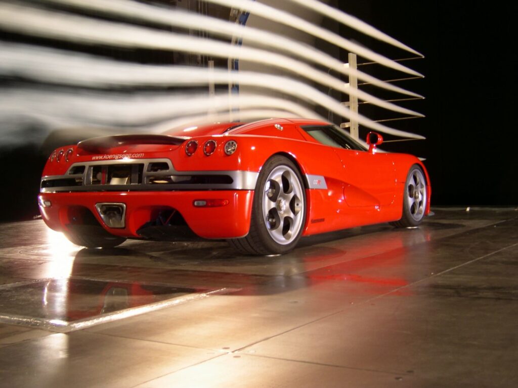 Koenigsegg CCR’s design är inte bara estetiskt tilltalande utan representerar även en ingående förståelse för aerodynamik. Varje yta, varje vinge är inte bara formgiven för att tilltala ögat utan är också noggrant konstruerad för att minimera luftmotståndet och optimera downforce. Denna synergi av form och funktion är grundläggande för att inte bara skapa en visuellt imponerande bil utan även för att säkerställa överlägsen stabilitet vid extrema hastigheter.
