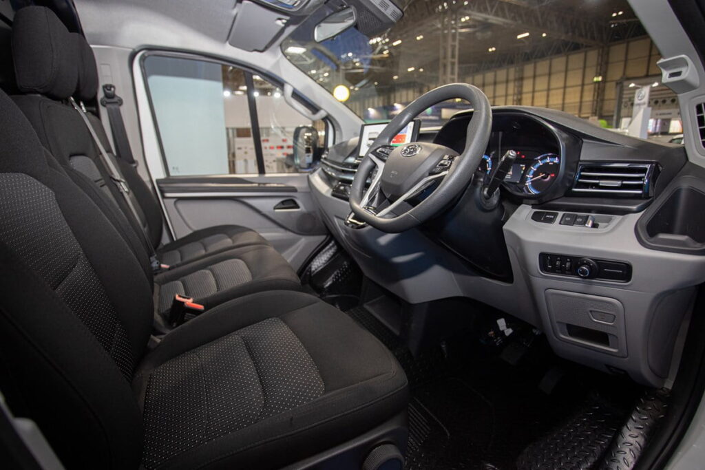 Maxus E-DELIVER 7 erbjuder inte bara kraftfull prestanda utan också en bekväm och funktionell inredning. Med tre sittplatser är den idealisk för arbetsgrupper som behöver röra sig effektivt mellan platser. Den höga kvalitetskänslan i interiören tillsammans med smarta designfunktioner ger föraren och passagerarna en behaglig arbetsmiljö under hela resan.