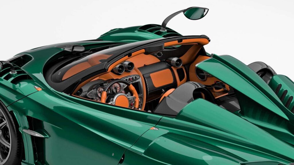 Paganis strävan efter perfektion utvidgas även till bilens färgsystem. Acquarello Light-systemet bidrar till att minska vikten med 5 kg, samtidigt som färgens intensitet och djup bibehålls, vilket visar varumärkets åtagande för viktreduktion utan att kompromissa med kvaliteten.
