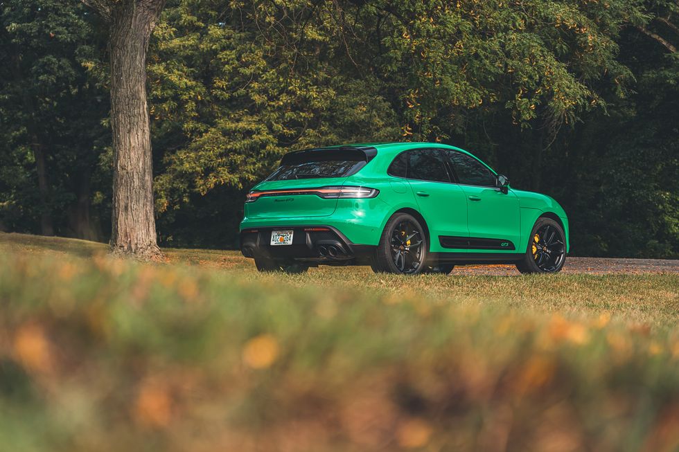 Det första som möter ögat är Macan GTS:s dynamiska och strömlinjeformade design. Linjerna är skarpa och ändå harmoniska, vilket ger bilen en aerodynamisk profil som inte bara lockar till sig blickar utan också bidrar till dess imponerande prestanda. Med betoning på detaljer, inklusive det karakteristiska Porsche-emblemet och de distinkta LED-strålkastarna, ger Macan GTS en känsla av exklusivitet och elegans.