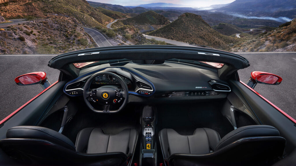 Interiören i 296 GTS är en blandning av lyx och högteknologi. Förarens sittplats är omgiven av en futuristisk cockpit med digitala instrumentpaneler och intuitiva kontroller. Materialvalen är de finaste – läder, kolfiber och aluminium – som alla bidrar till en exklusiv känsla.