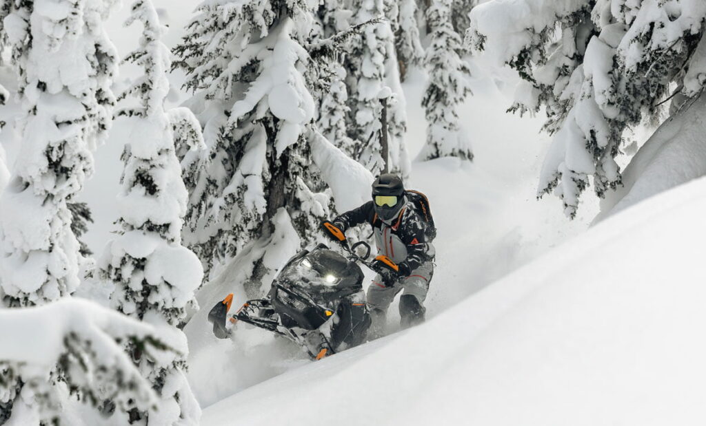 Ski-Doo Summit har utformats med hänsyn till extrema terränger och utmanande förhållanden. Den är byggd för att leverera enastående prestanda och manövrerbarhet på varierande snöunderlag, från djup lös snö till branta sluttningar och klippiga backar.