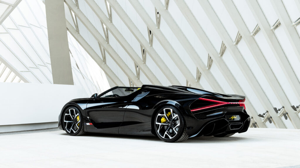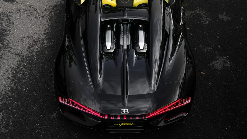 Mistral är inte bara en bil, det är en hyllning till Bugattis arv och ett sista farväl till dess berömda motor. Den massiva 8,0-liters quad-turbo W16-motorn producerar hisnande 1 600 hästkrafter, hämtade från samma drivlina som i Bugatti Chiron Super Sport 300+.