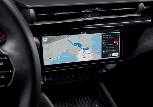 Med en vikt på 1 590 kg, perfekt viktfördelning och ett sportchassi kalibrerat för precision, sätter den nya Junior Veloce standarden för eldrivna kompaktbilar. Ett 54 kWh batteri driver framhjulen och levererar upp till 334 km i räckvidd (WLTP), och med hjälp av 100 kW snabbladdning kan batteriet laddas från 10 till 80% på under 30 minuter – perfekt för en snabb laddning under längre resor.