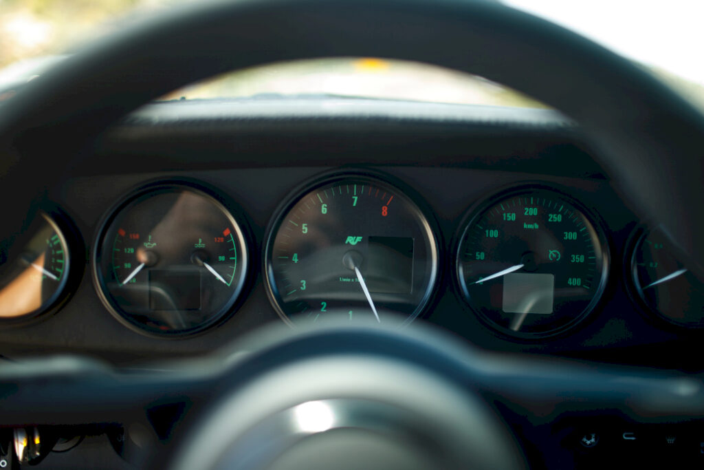 Interiören i RUF CTR Anniversary är en blandning av tidlös elegans och toppmodern teknologi. Kupén är klädd i högkvalitativa material som läder och Alcantara, vilket ger en lyxig känsla som matchar bilens prestanda.