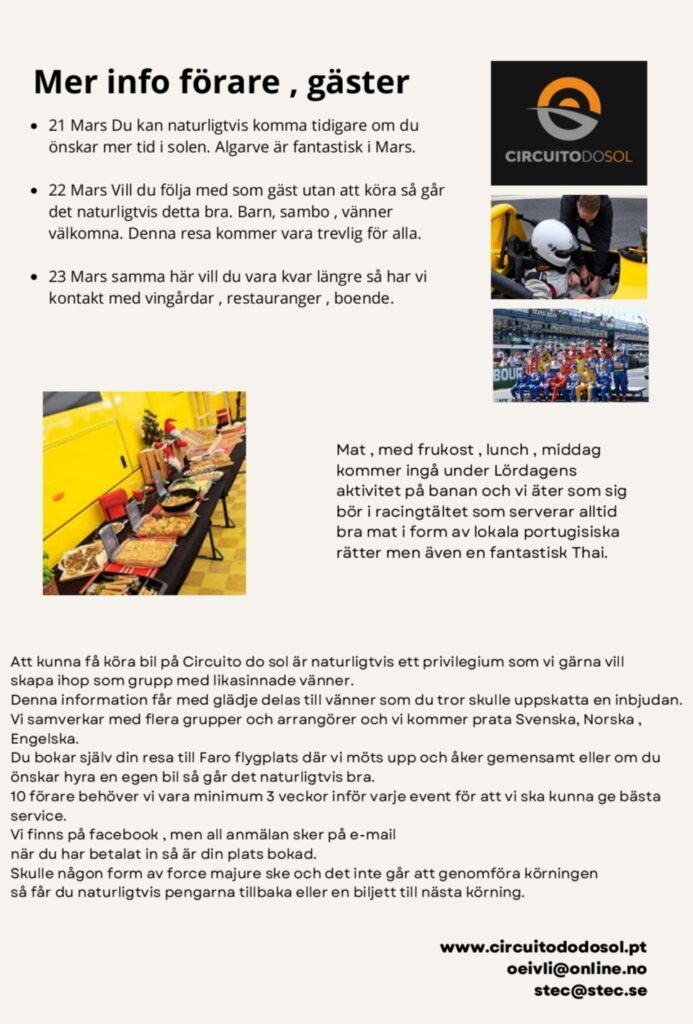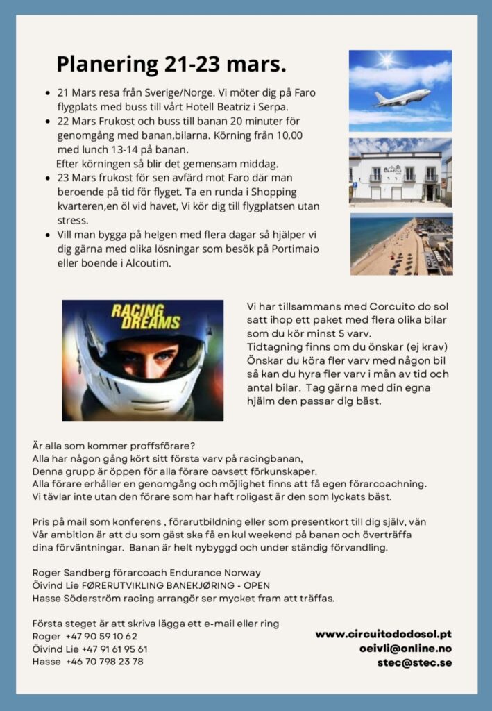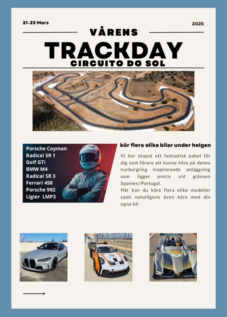 Motorextra bjuder in dig till en unik racingupplevelse i Spanien och Portugal! Här får du chansen att både njuta av högklassig racing och köra själv på några av de mest spännande banorna i regionen, tack vare färdiga hyrbilspaket.