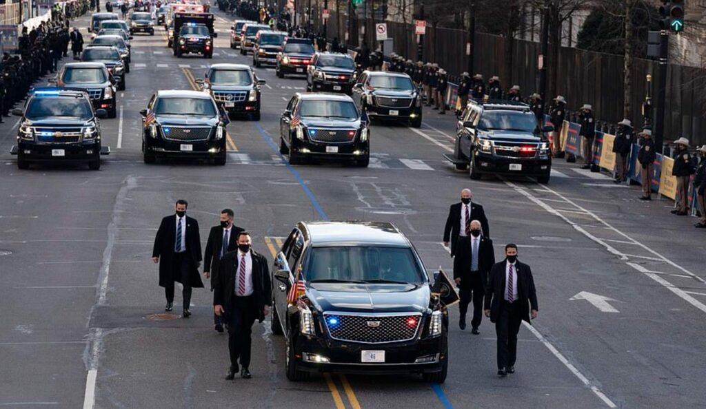 “The Beast” rullar aldrig ensam. En eskort av Secret Service-fordon, polis och militärfordon omger bilen och säkerställer en trygg transport i varje steg av resan. Eskorten är inte bara en säkerhetsåtgärd, utan också en kraftfull symbol för nationens engagemang för att skydda sin ledare, oavsett hot.