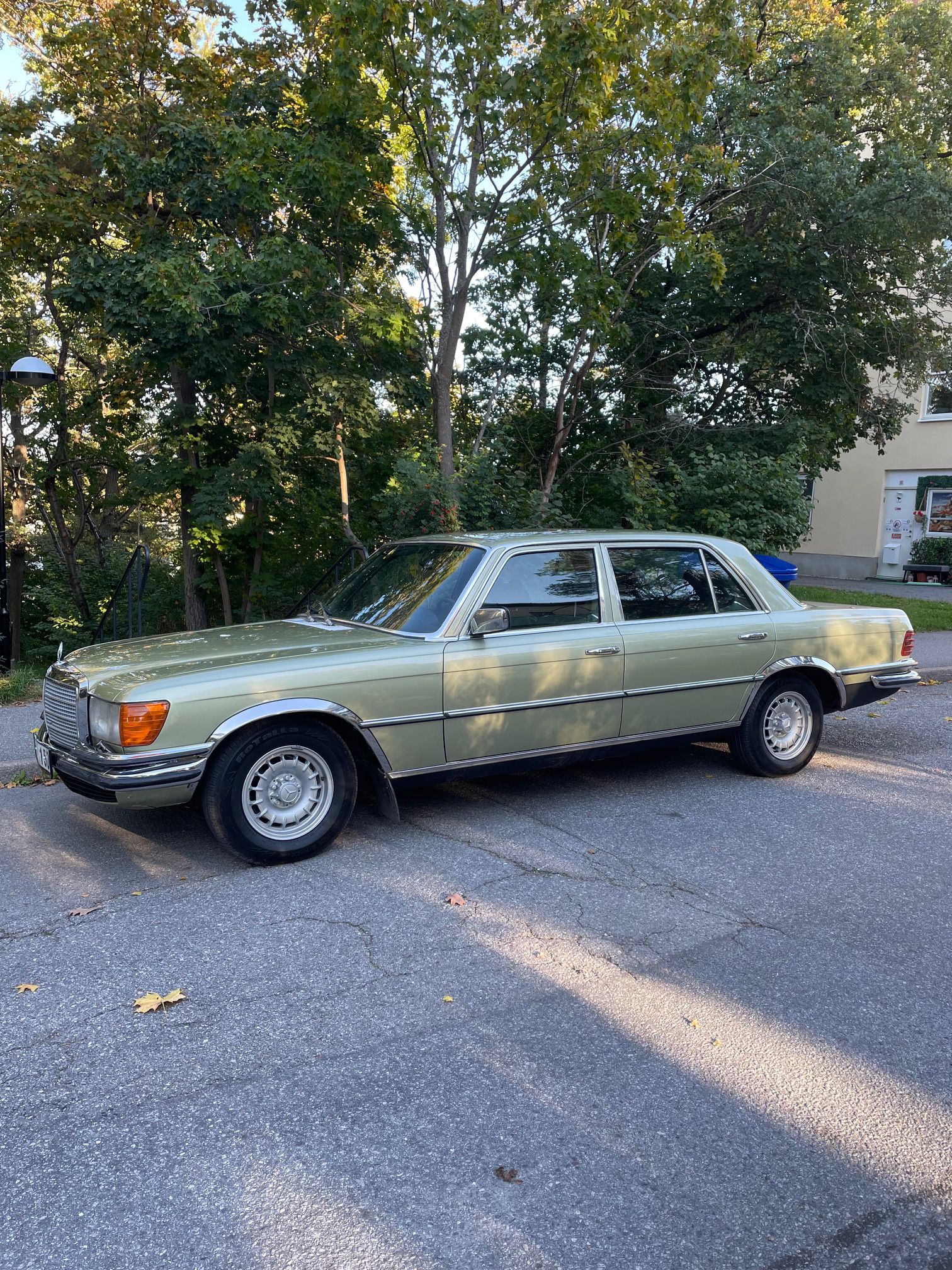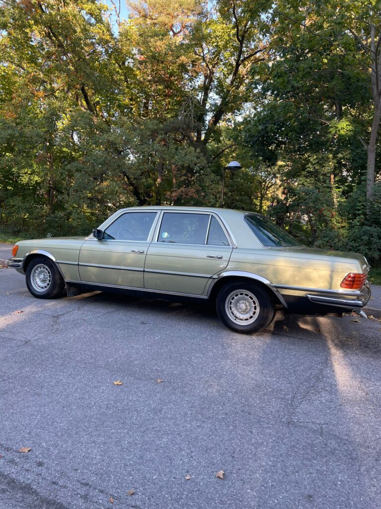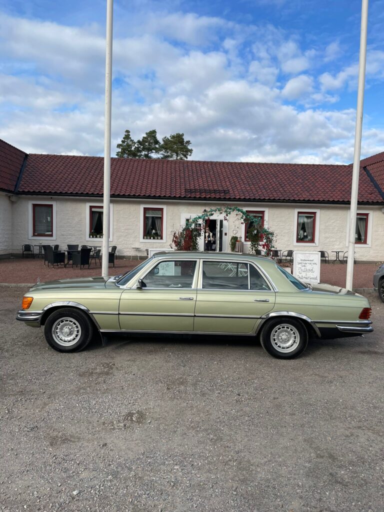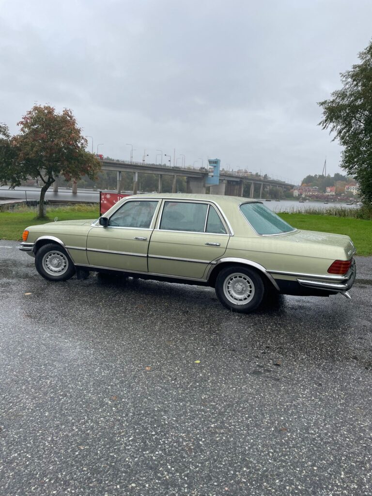 Med solen glimmande över Bengtsson Bil Premium Selection´s gårdsplan och en aura av klassisk elegans, står den där – en Mercedes S-klass W116 från 1974. Modell 450SEL. Med sin V8 på 225 hästkrafter och en historia som doftar av både lyx och nostalgi, är det svårt att inte bli förälskad vid första anblicken.